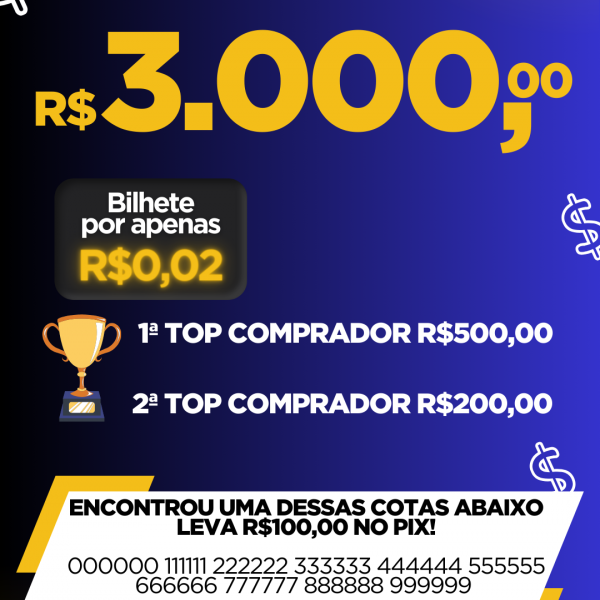 R$200.00 PARA O SEGUNDO QUE ADQUIRIR MAIS BILHETE